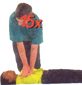 پس از انجام 15 عدد ماساژ پشت سر هم ( این 15 ماساژ در مدت 11 ثانیه خواهد بود ) دو عددتنفس مصنوعی به فرد بدهید شما برای انجام این دو تنفس 4 ثانیه فرصت دارید .این سیکل باید چهار بار در دقیقه تکرار شود برای اینکه بتوانید نسبت 15:2 را در هر دوره رعایت کنید بهتر است با هر ماساژ شماره آن را بلند بگویید .