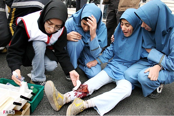 بعد از انجام پانسمان و آتل بندی مصدومان را روی برانکارد گذاشتیم و از سالن مدرسه به سمت حیاط حرکت کردیم. وقتی وارد حیاط شدیم بازرسان و ناظران هم ایستاده بودند و مانور را تماشا می کردند. ما هم به روی خودمان نیاوردیم که قضیه از چه قراره. به سایر دوستان اشاره کردم که بالای سر دانش آموزان مصدوم بایستند تا من هم ادامه مانور را بچرخونم!